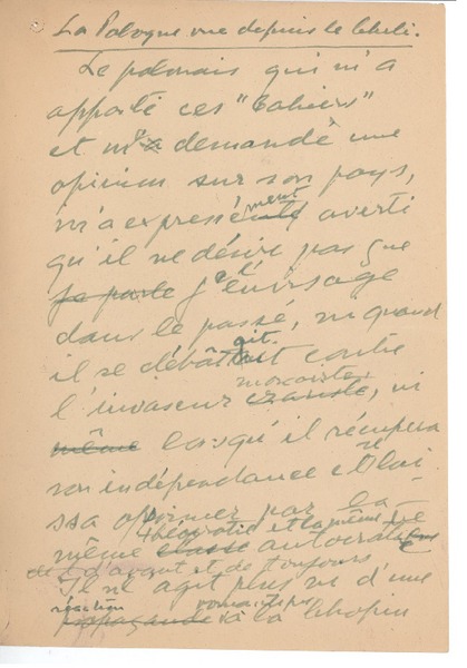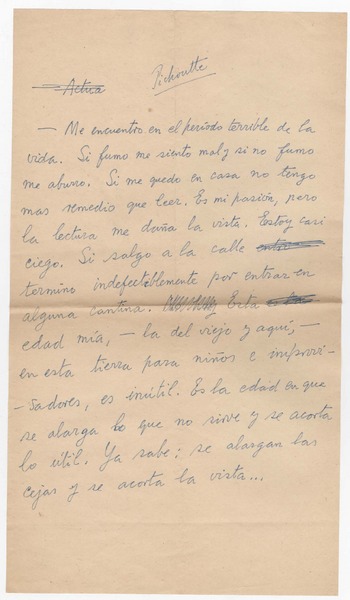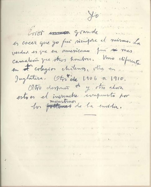 Últimas palabras [manuscrito] Joaquín Edwards Bello.