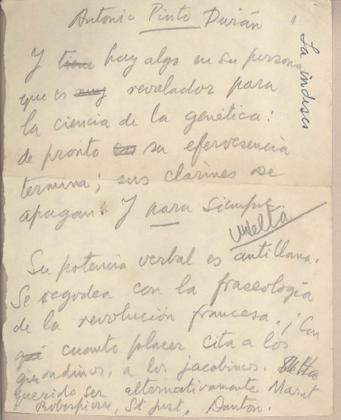 Antonio Pinto Durán [manuscrito] Joaquín Edwards Bello.
