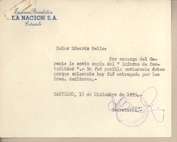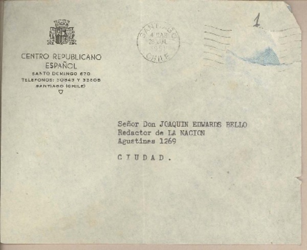 Presidente [manuscrito] Joaquín Edwards Bello.