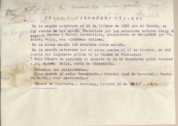 [Andrés Bello] [manuscrito] Joaquín Edwards Bello.