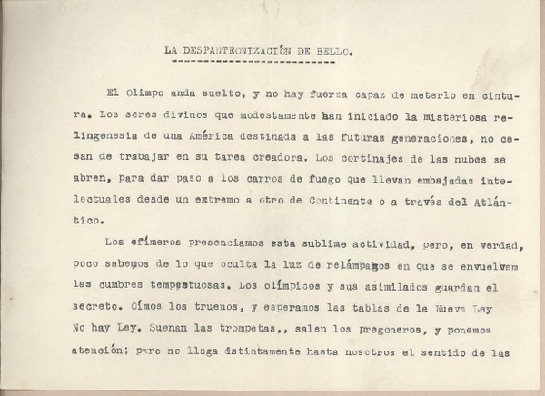 Bello, el diferente [manuscrito] Joaquín Edwards Bello.