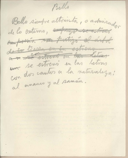 Andrés Bello I : borrador [manuscrito] Joaquín Edwards Bello.