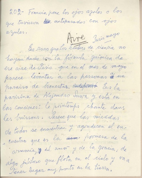 Canciones - París [manuscrito] Joaquín Edwards Bello.