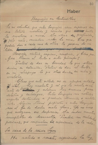 Bosquejos en bastardillas [manuscrito] Joaquín Edwards Bello.