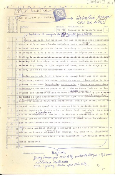 Se busca un paraíso : [entrevista] [manuscrito] [Margarita Serrano.]