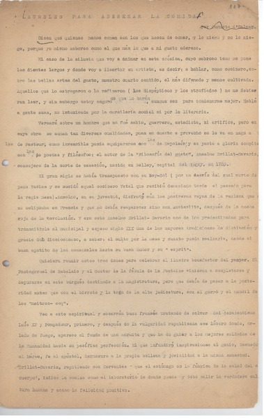 Restorantes [manuscrito] Joaquín Edwards Bello.