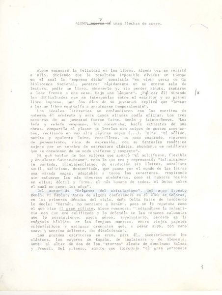 Alone y unas flechas de acero [manuscrito] Alfonso Calderón.