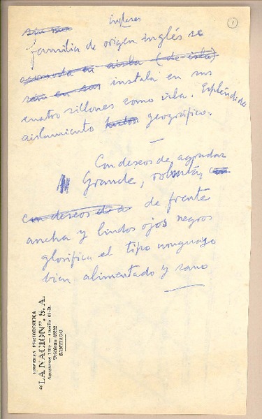 [Adquieren formas de razas blancas...] [manuscrito] Joaquín Edwards Bello.