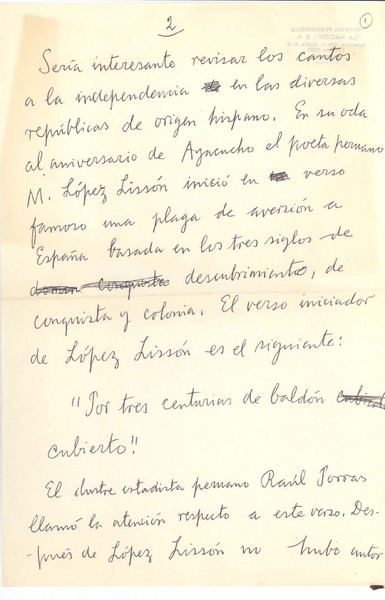 [Sería interesante revisar los cantos a la independencia...] [manuscrito] Joaquín Edwards Bello.