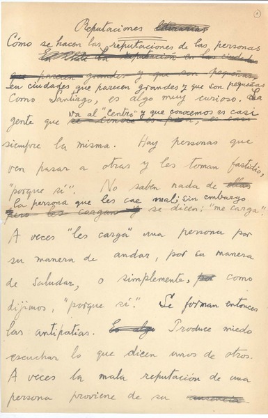 Reputaciones [manuscrito] Joaquín Edwards Bello.