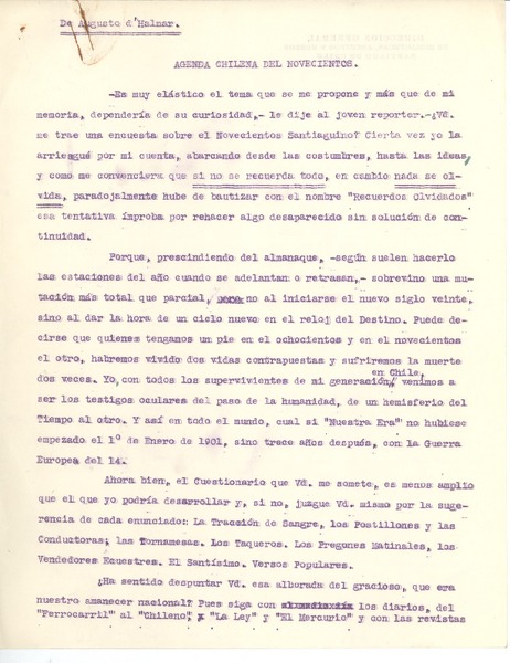 Agenda chilena del novecientos [manuscrito] Augusto D'Halmar.