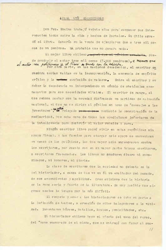 [Saqueos] [manuscrito] Joaquín Edwards Bello.