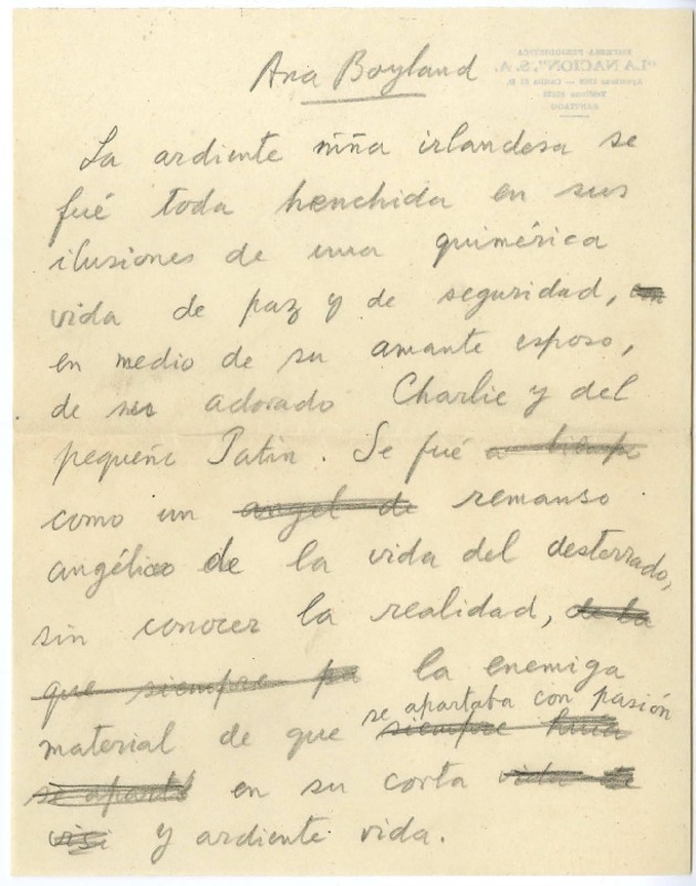 Ana Boyland [manuscrito] Joaquín Edwards Bello.