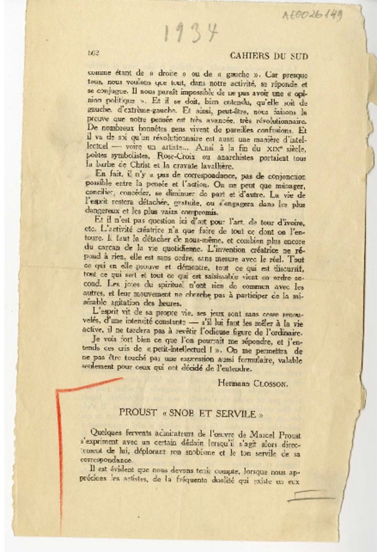 Proust, snob et servile [manuscrito] Magdalena Petit.