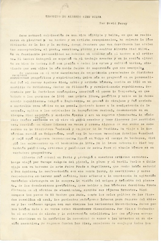 Tránsito de Alberto Ried Silva [manuscrito] David Perry Barnes.