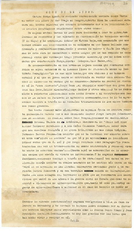 Artículos periodísticos - Lagos Lisboa, Jerónimo - Manuscritos chilenos