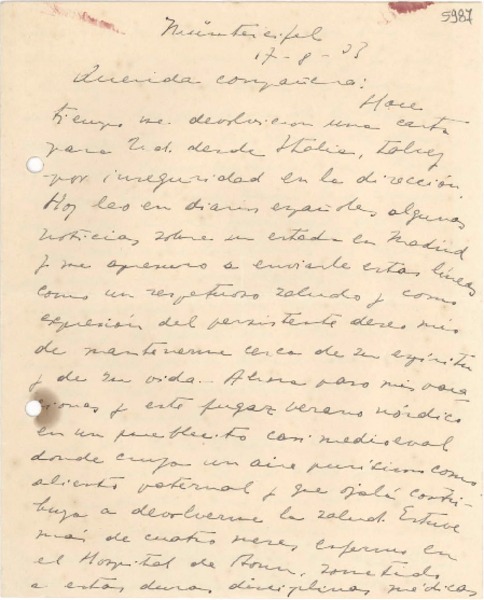 [Carta] ago. 17, Bonn, [Alemania] [a] Gabriela Mistral [manuscrito] Díaz Casanueva.