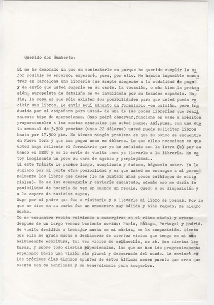 [Carta] 1984 sep. 18, Barcelona, España [a] Cristóbal Santa Cruz [manuscrito] Humberto Díaz-Casanueva.
