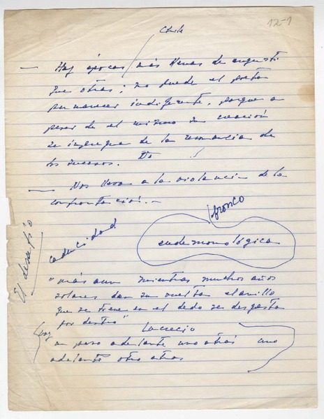 [Borrador de texto] [manuscrito] Humberto Díaz-Casanueva.