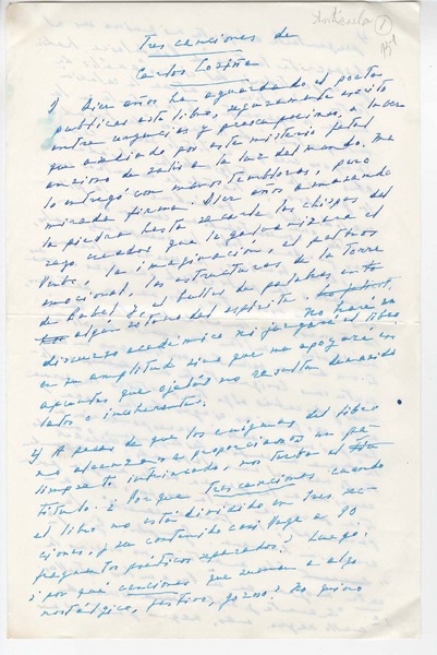Díaz-Casanueva, Humberto - Correspondencia - Autores chilenos - Manuscritos chilenos