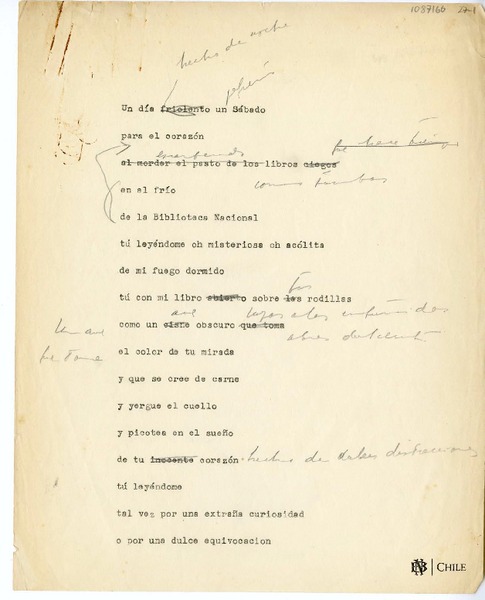 [Un día hecho de noche...] [manuscrito] Humberto Díaz Casanueva.