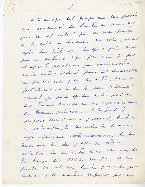Conferencia mundial de poesía de Corfú [manuscrito] Humberto Díaz-Casanueva.
