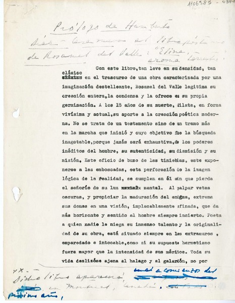 Prólogos - Valle, Rosamel del - Manuscritos chilenos