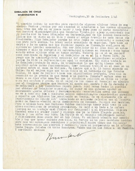 [Carta] 1946 septiembre 30, Washington D.C [a Anita] [manuscrito] Humberto Díaz-Casanueva.