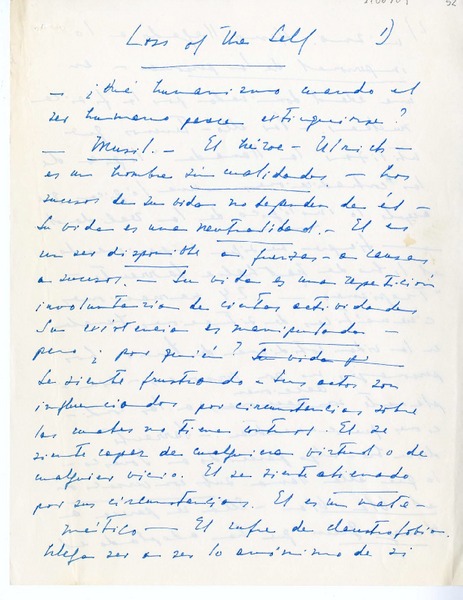 Loss of the self [manuscrito] Humberto Díaz-Casanueva.