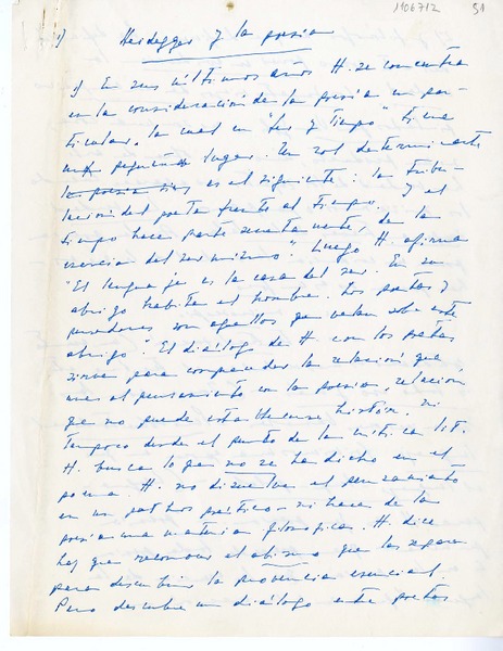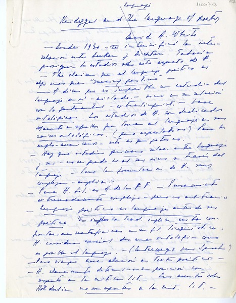 Heidegger y la poesía [manuscrito] Humberto Díaz-Casanueva.