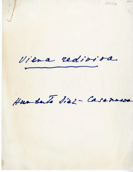 Viena Rediviva [manuscrito] Humberto Díaz-Casanueva.