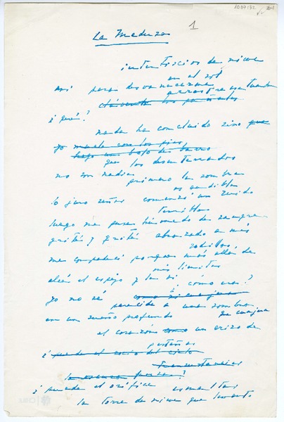 La meduza [manuscrito] Humberto Díaz-Casanueva.