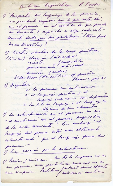 Crítica lingüistica [manuscrito] Humberto Díaz-Casanueva.