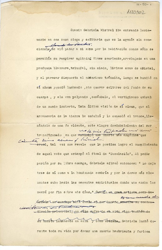 [Ensayo sobre Gabriela Mistral] [manuscrito] Humberto Díaz Casanueva.