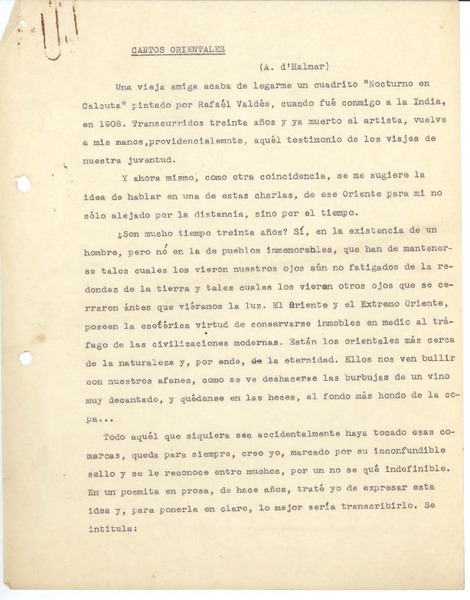 Cantos orientales [manuscrito] Augusto D'Halmar.