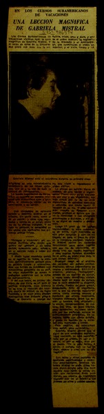 Una lección magnífica de Gabriela Mistral, en los Cursos Suramericanos de Vacaciones. [artículo]