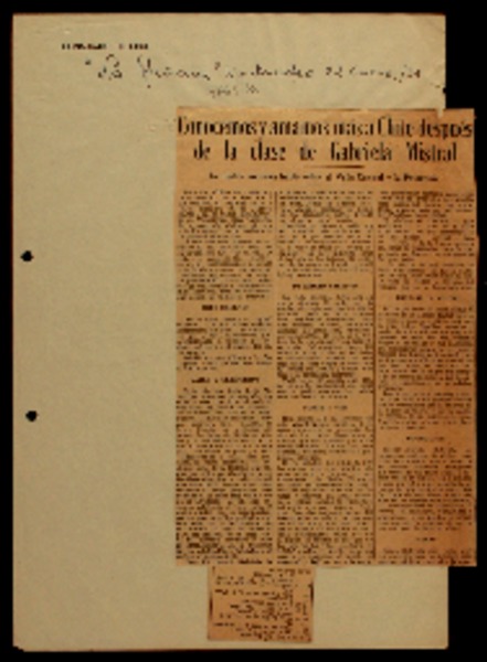 Manuscritos chilenos - Poetisas chilenas - Conferencias - Mistral, Gabriela