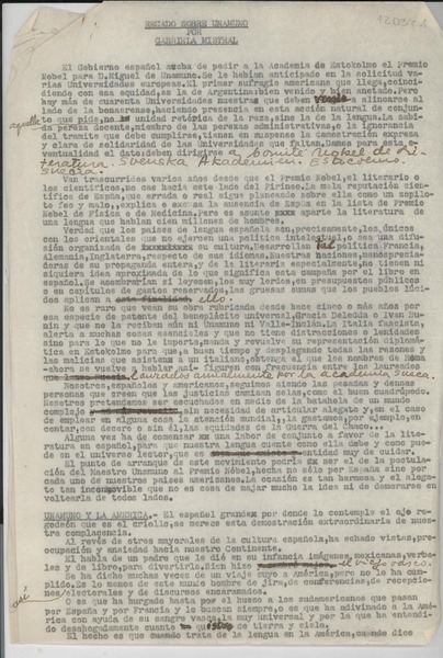 Mistral, Gabriela - Unamuno, Miguel de - Poetisas chilenas - Manuscritos
