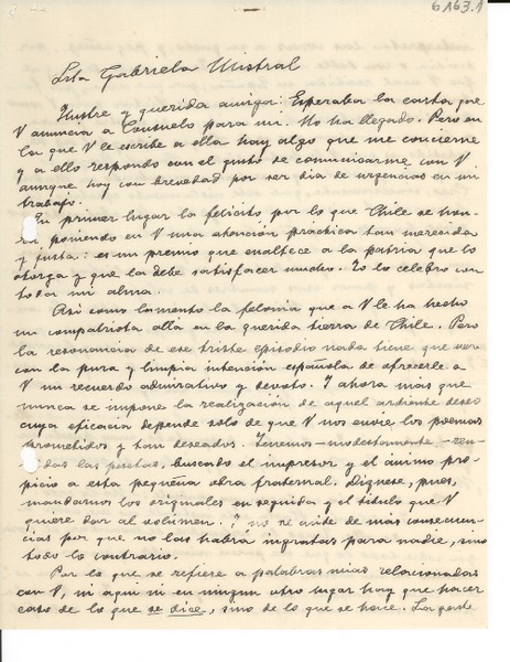 Espina, Concha - Correspondencia - Autoras españolas - Mistral, Gabriela - Manuscritos españoles