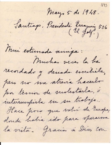 Mackenna, Carmela - Correspondencia - Mistral, Gabriela - Manuscritos chilenos