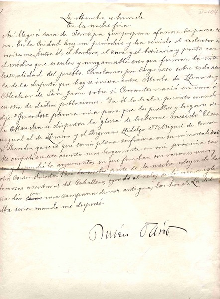 [Una vuelta, en un recodo,...] [manuscrito] Rubén Darío.