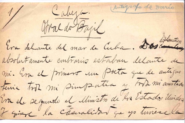 Cabeza. Gral. do Brazil [manuscrito] Rubén Darío.