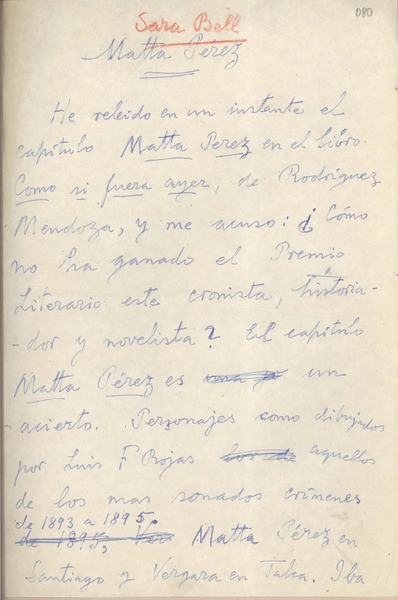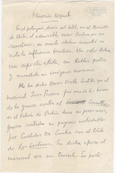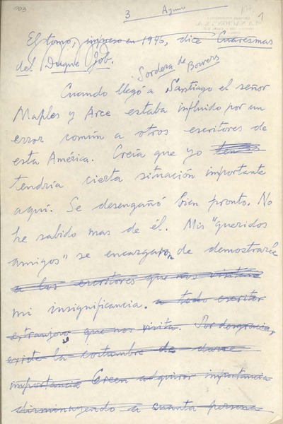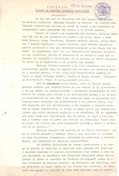 Prólogo [manuscrito] Joaquín Edwards Bello.