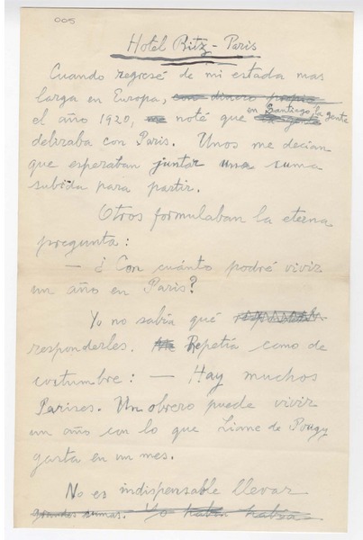 Viaje [manuscrito] Juan Guzmán Cruchaga.