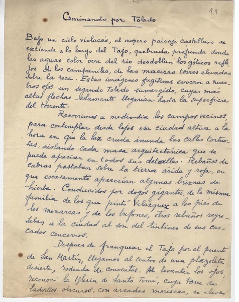 Caminando por Toledo [manuscrito] Hernán Fabres.