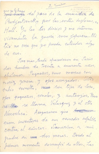 Recuerdos personales [manuscrito] Joaquín Edwards Bello.