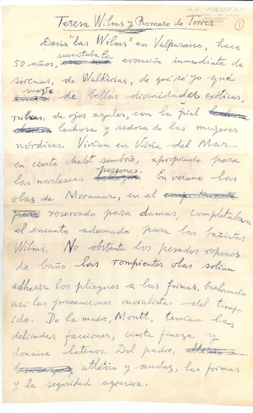 Teresa Wilms y Romero de Torres [manuscrito] Joaquín Edwards Bello.
