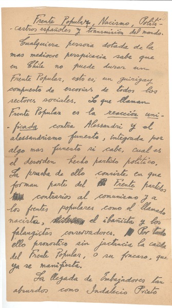 Un estatista gallo [manuscrito] Fernando Santiván.