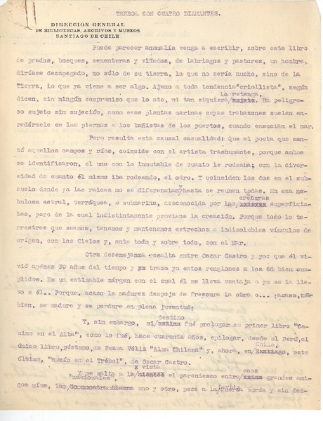 Trébol con cuatro diamantes [manuscrito] Augusto D'Halmar.