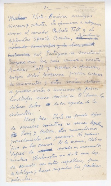 Solicitud de préstamos a Estados Unidos [manuscrito] Fernando Santiván.